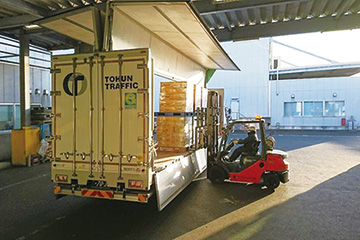 東北エリアにて、主力の段ボール輸送を軸に新規に飲料・内装素材等に取扱いの幅を広げております。また、輸送の他にグループ内の構内作業を積極的に行い東北エリアにおけるお客様から信頼される物流パートナーを目指しております。
