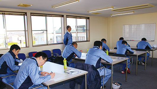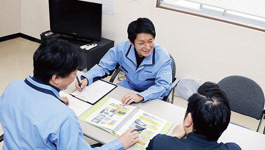 災害ゼロに向けた職場環境整備と教育。女性社員による職場環境改善委員会にて職場環境改善の取り組み。健康企業宣言として、会社全体で社員の健康づくりの取り組み。
