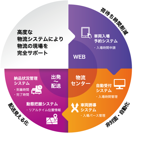 そのほか、配車システム・自動受付入場予約システム・構内車両誘導システム・納品状況管理システム等、