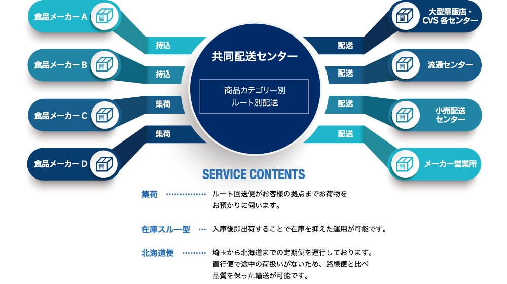 今後も永年培ったノウハウを駆使し、お客様の利益を最大化できる独自の戦略的な共同物流システムをご提供します。