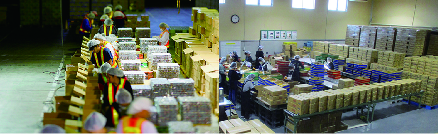 (飲料缶のシュリンク・スイートコーン検品作業等)PSセンター(日用雑貨専用) 日用雑貨の流通加工場(タオルセット・値札付等)