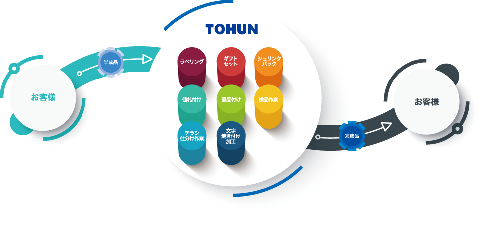 当社では、受注から商品の集荷、加工作業、検品、納品までの一貫した工程を、責任を持って迅速に実施します。